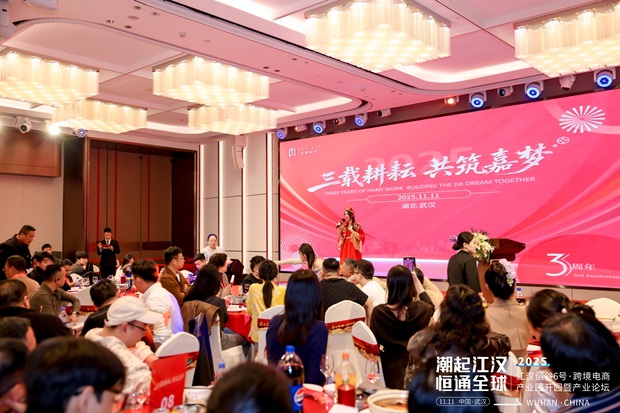 2025年11月11日,武汉江汉区迎来“产业赋能+企业发展”双重里程碑——江汉创谷6号跨境电商产业园开园暨产业论坛、有嘉集团三周年庆典晚宴璀璨启幕,以“全球化产业生态构建”与“企业三年成长叙事”的双线布局,绘就武汉跨境电商与企业发展的标杆画卷。