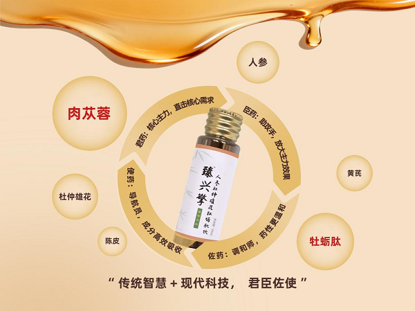 (图3:华夏药王品牌旗下产品,臻兴擎人参杜仲雄花牡蛎肽饮)