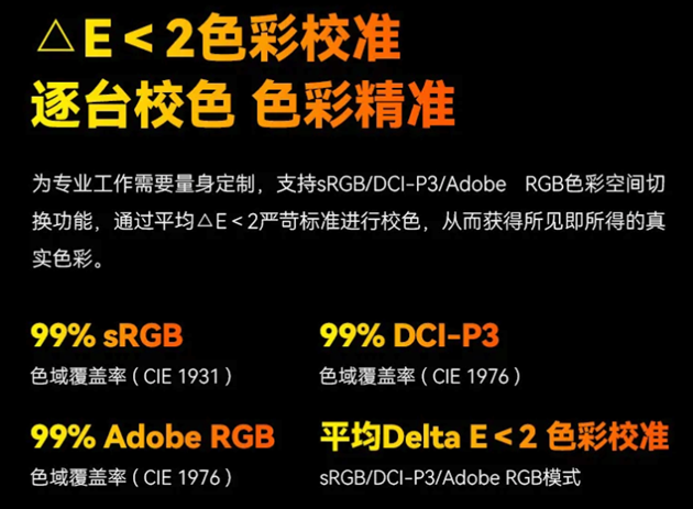 在色彩表现上,泰坦军团MiniLED显示器均经过逐台出厂校色,ΔE<2的色彩精度与99%以上的sRGB、Adobe RGB、DCI-P3色域覆盖,能够精准还原色彩本真,无论是电竞娱乐中的色彩渲染,还是专业设计中的色彩校准,都能轻松胜任。