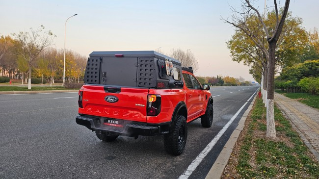 依托品牌数百项专利技术,打造 “全地形全能” 的核心实力。搭载 2.3T EcoBoost®汽油发动机,爆发190千瓦(258 马力)最大功率与450牛・米峰值扭矩,匹配8速自动变速箱,动力输出强劲且平顺,无论是陡坡攀爬、高速驰骋还是拖拽露营装备,都游刃有余,动力参数全面优于竞品的基础版动力。越野配置更是武装到牙齿:非承载式车身搭配后悬架钢板弹簧加强,车身刚性远超竞品的承载式结构;EMOD智能全时四驱 + 后桥电控机械差速锁,配合TMS全地形管理系统,轻松应对岩石、沙漠、泥泞等复杂路况,通过性碾压普通旅居车;289mm最小离地间隙、850mm最大涉水深度,搭配越野透明底盘、越野涉水探测与越野蠕行模式,让 “无路可走” 成为 “另一条路的起点”。