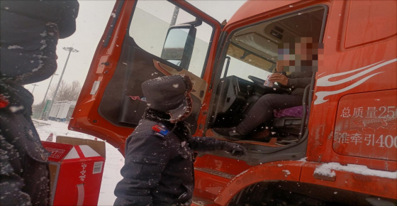 在这个寒冷的京哈高速口,哈南公安检查站的民辅警们用热情的服务,让困在此处的大车司机们感受到了来自警方的关怀与尊重,纷纷投来感激的目光。