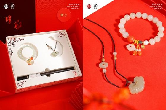 礼盒内的珠宝单品延续品牌原创设计基因,且礼盒贴心分为男款与女款,满足不同礼赠需求。其中男款礼盒中为大尺寸小叶紫檀手串,搭配如意纹银饰,质感古朴厚重,礼盒配赠可熏香的沉香木,尽显沉稳风雅;女款礼盒则包含和田玉手串与挂件,手串配上了和田玉如意小吊坠,而如意挂件不仅精雕了莲花,挂绳也精心搭配了如意玉饰,玉质通透细腻,礼盒配赠鹅梨帐中香,自带温婉氛围感。所有单品均甄选天然优质原料,经资深工匠手工挑选与精细打磨,既保留了传统珠宝的温润质感,又通过“传统工艺+现代技术”的双重加持,确保产品兼具美观度与耐用性,全方位贴合“长久如意”的核心概念,契合岁首迎新的节日氛围。